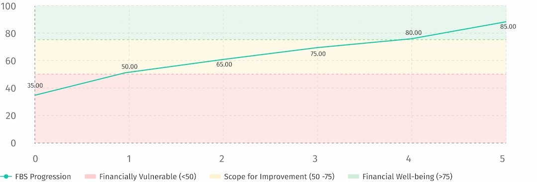 The Financial Behaviour Score is a metrics developed by Rupisafe and patented in India. This metric takes into account factors such as personality, life stage, generation, life constraints, and macroeconomic conditions.